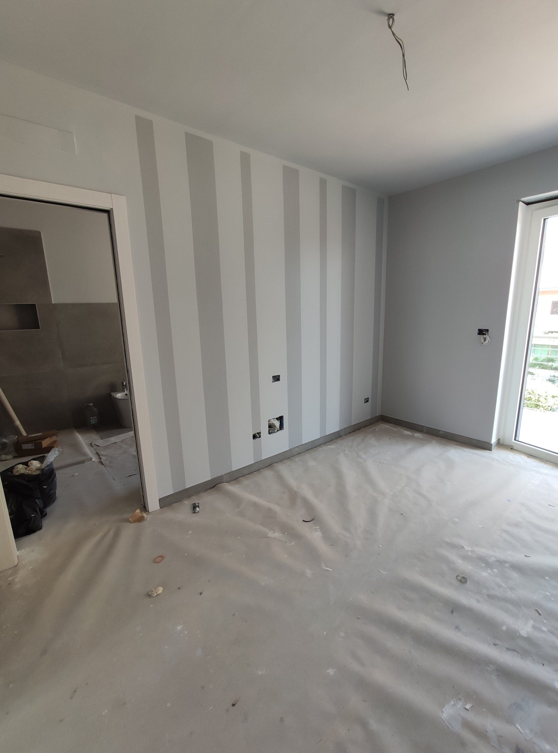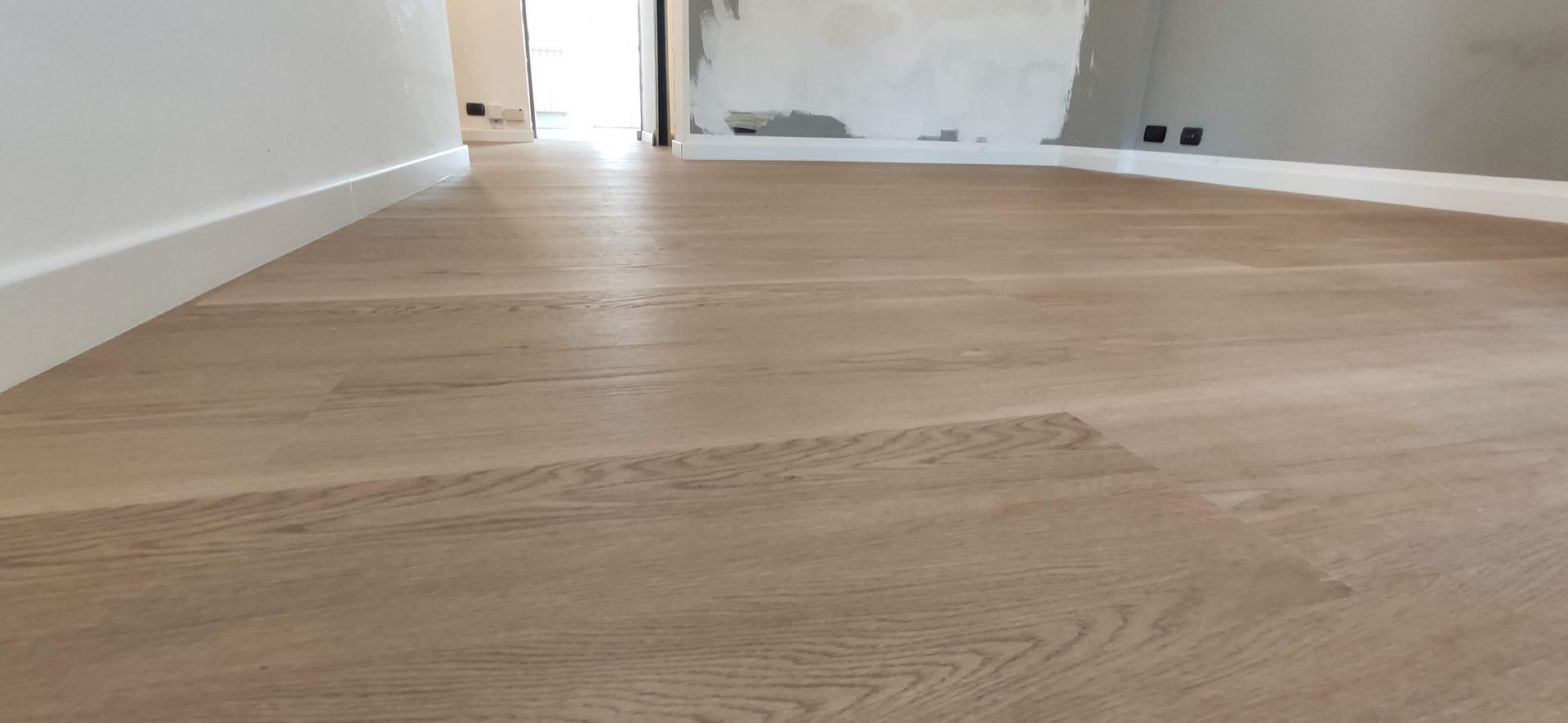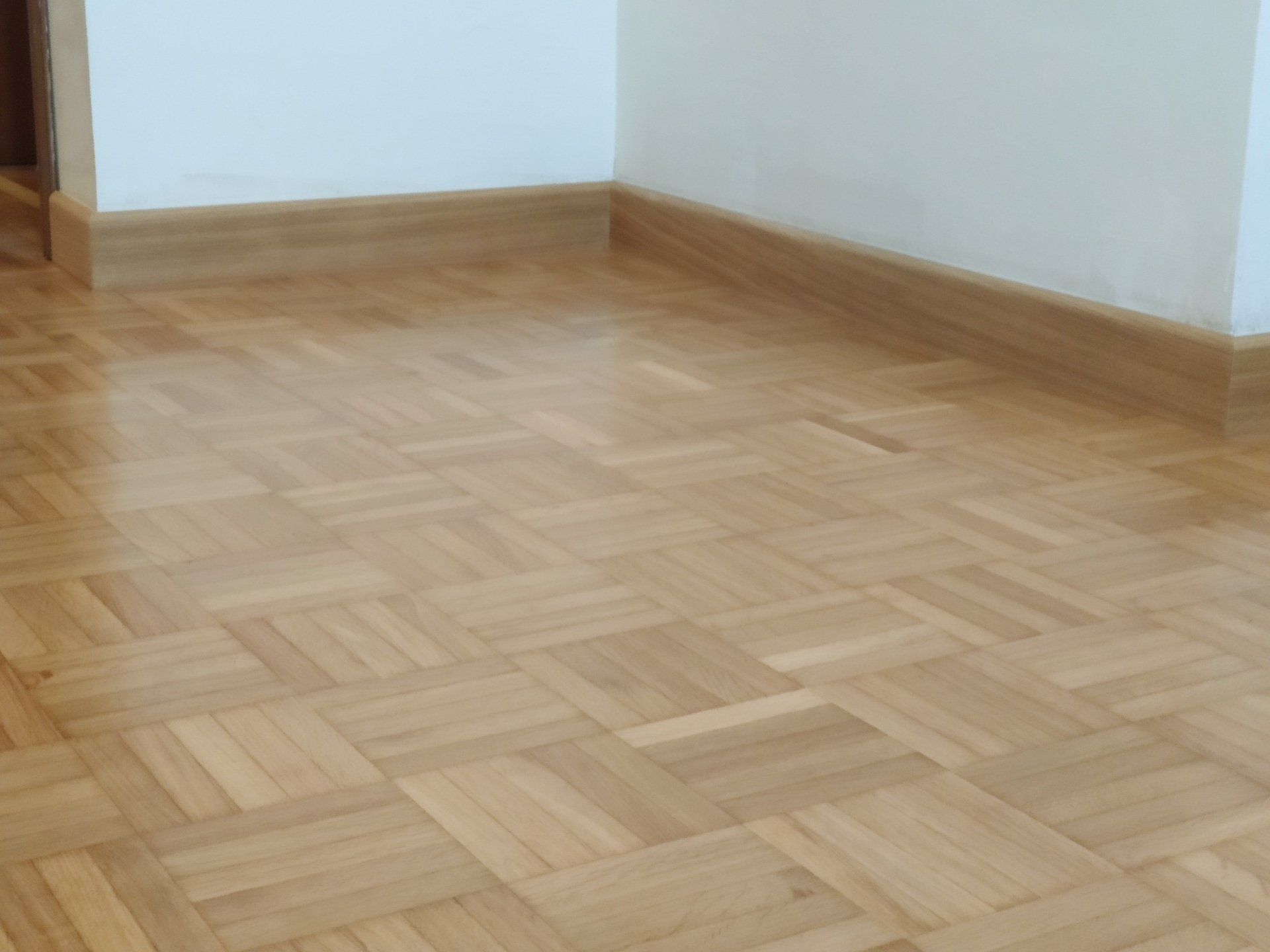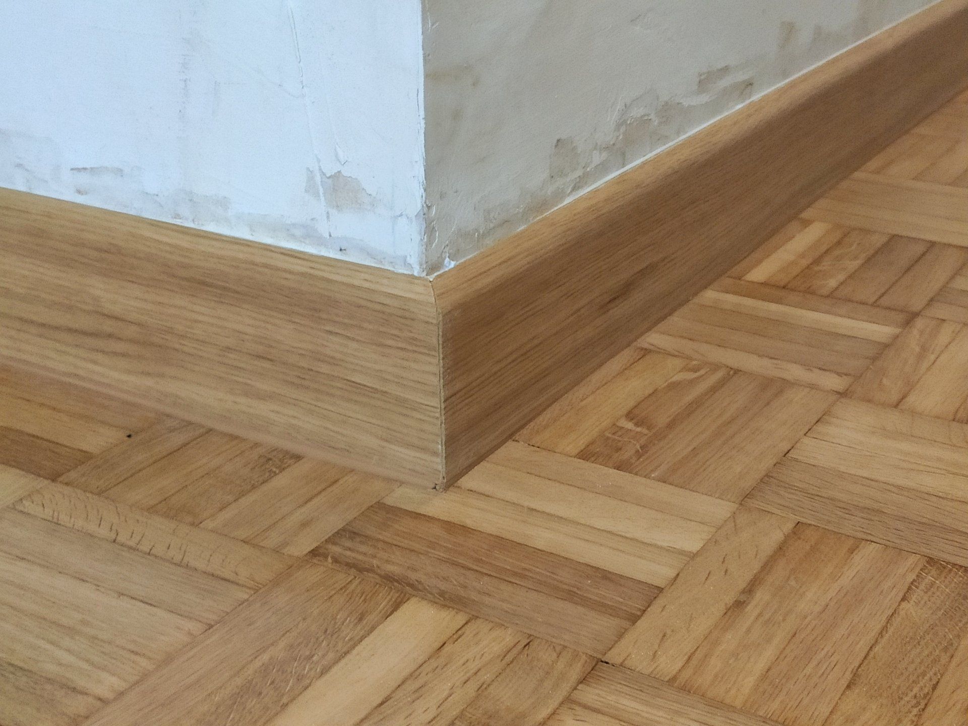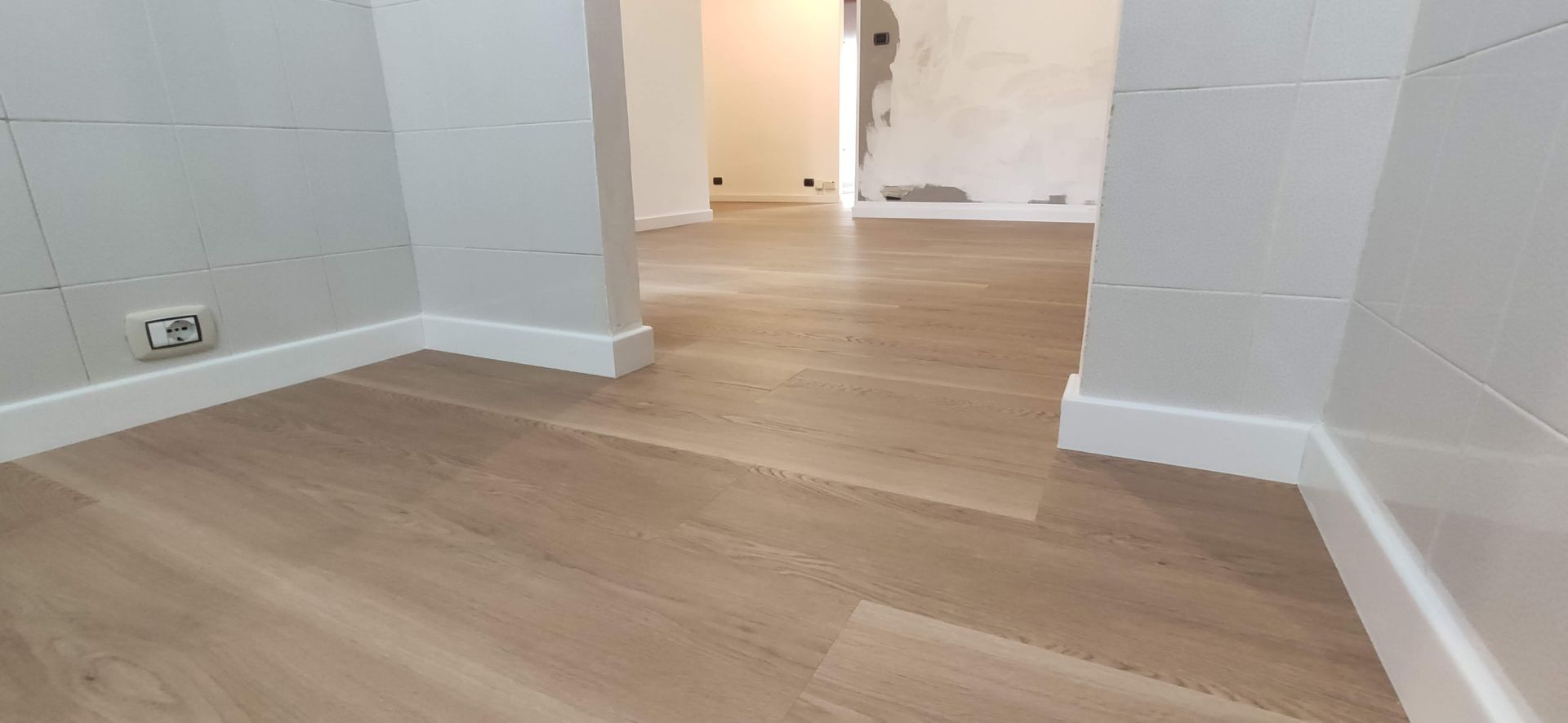 - fornitura battiscopa impiallacciati con posa in opera e stuccatura lungo il perimetro del muro.
