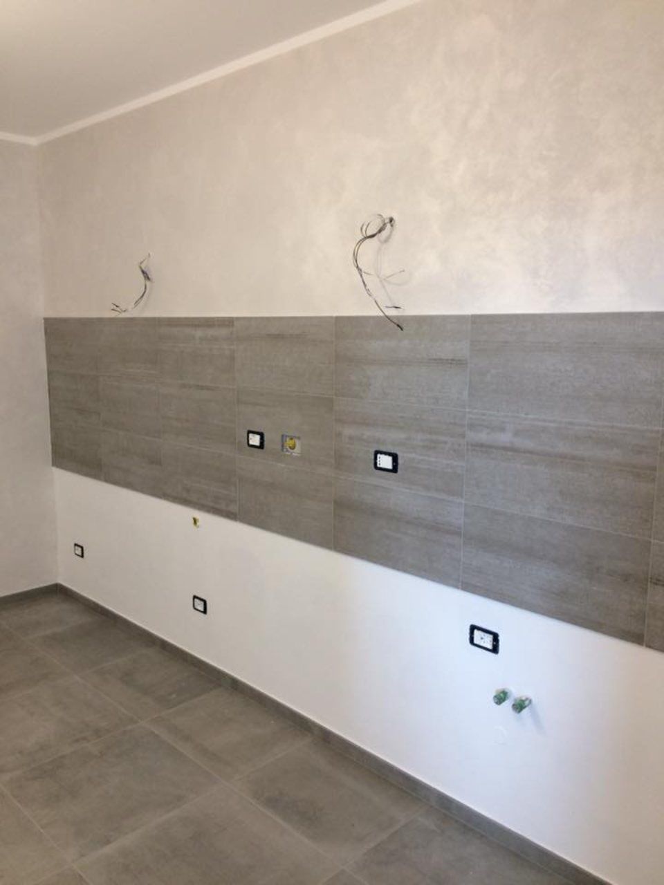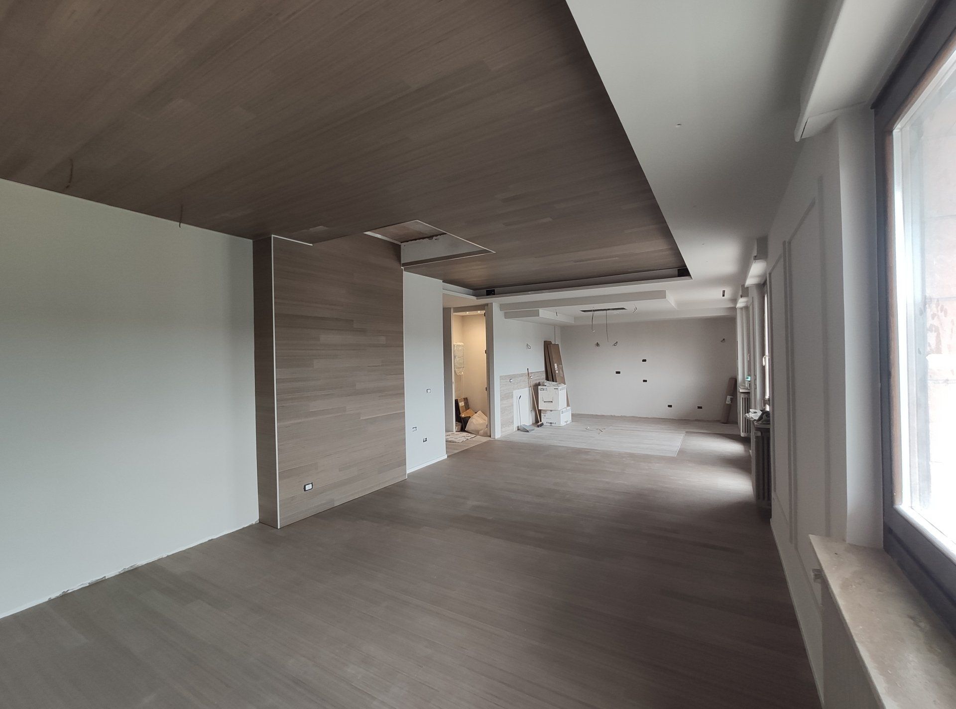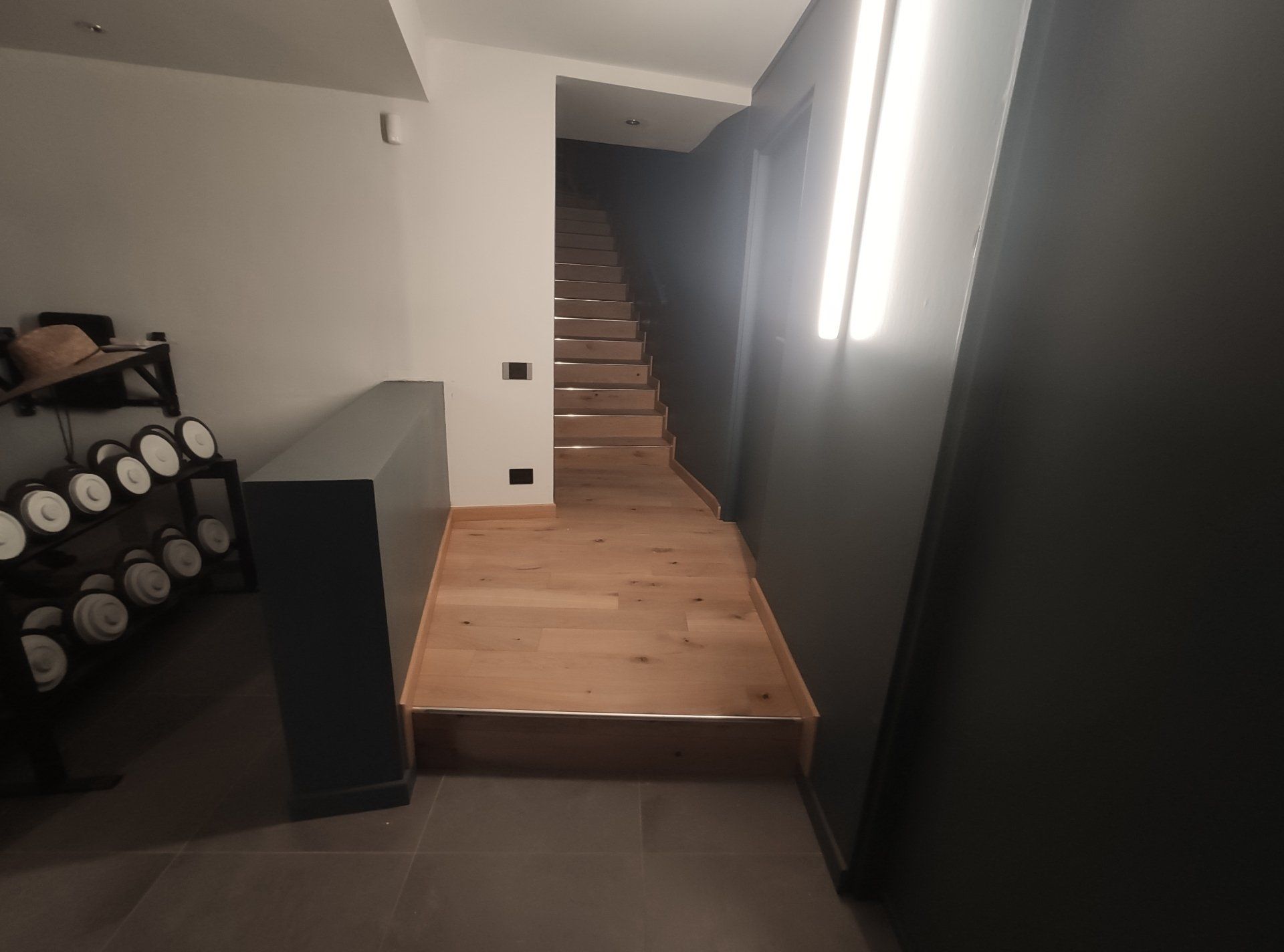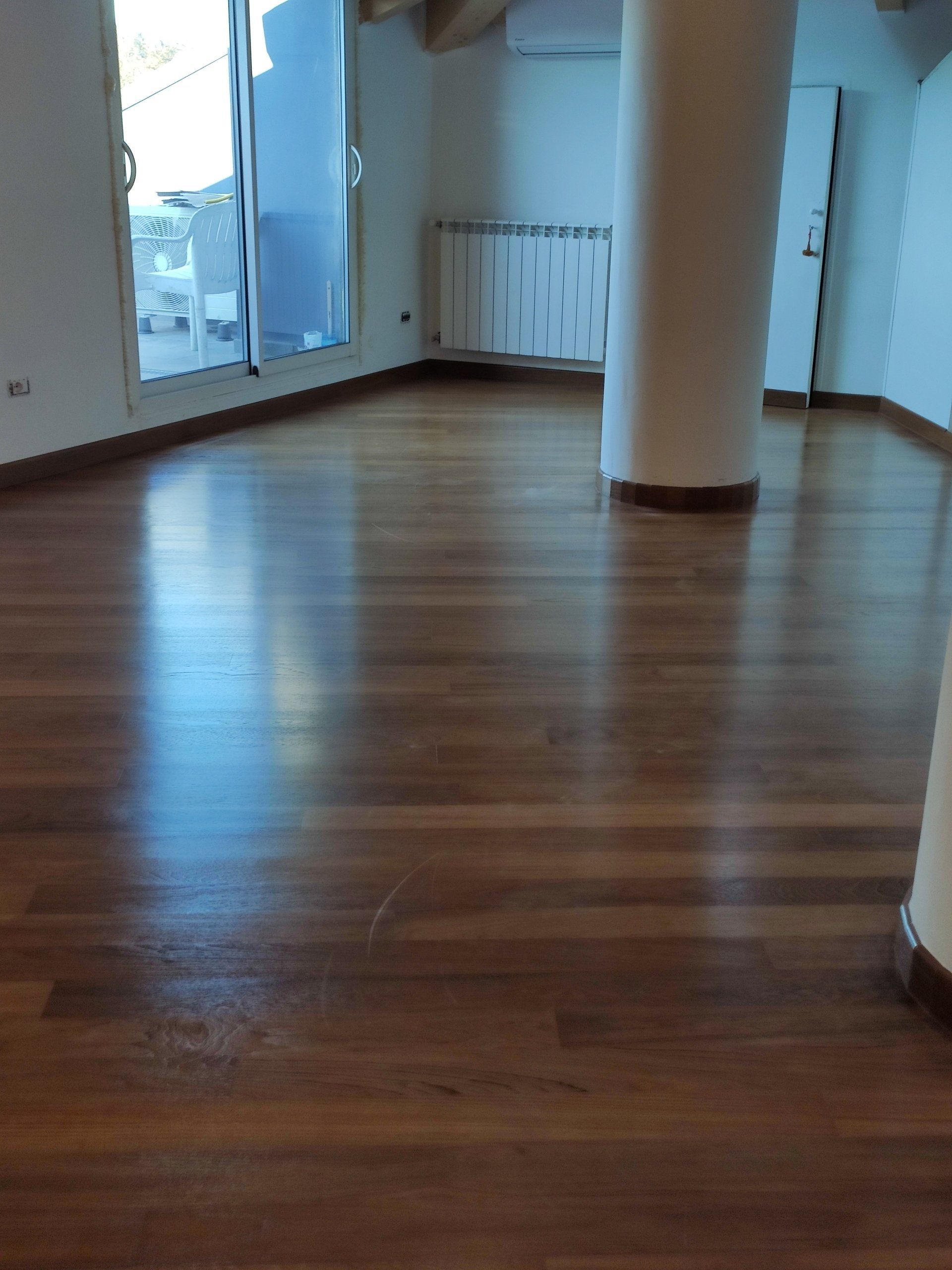 - fornitura battiscopa impiallacciati con posa in opera e stuccatura lungo il perimetro del muro.