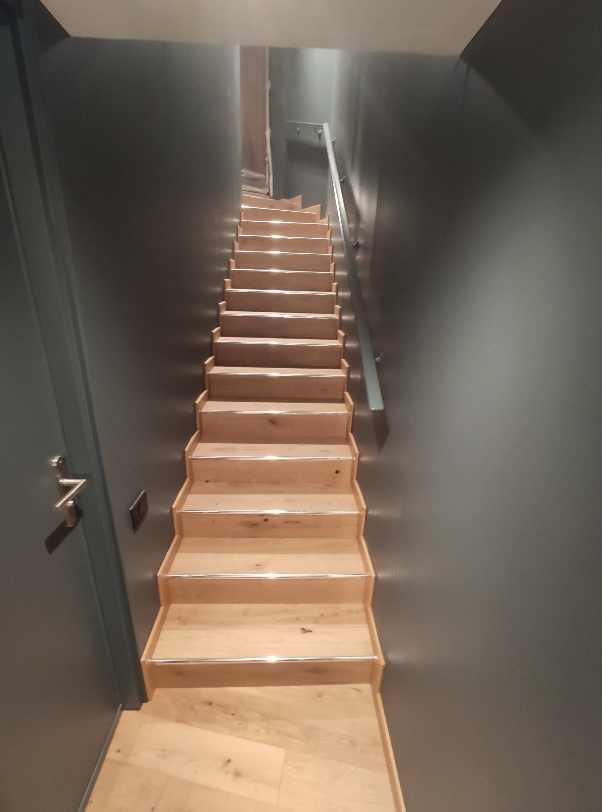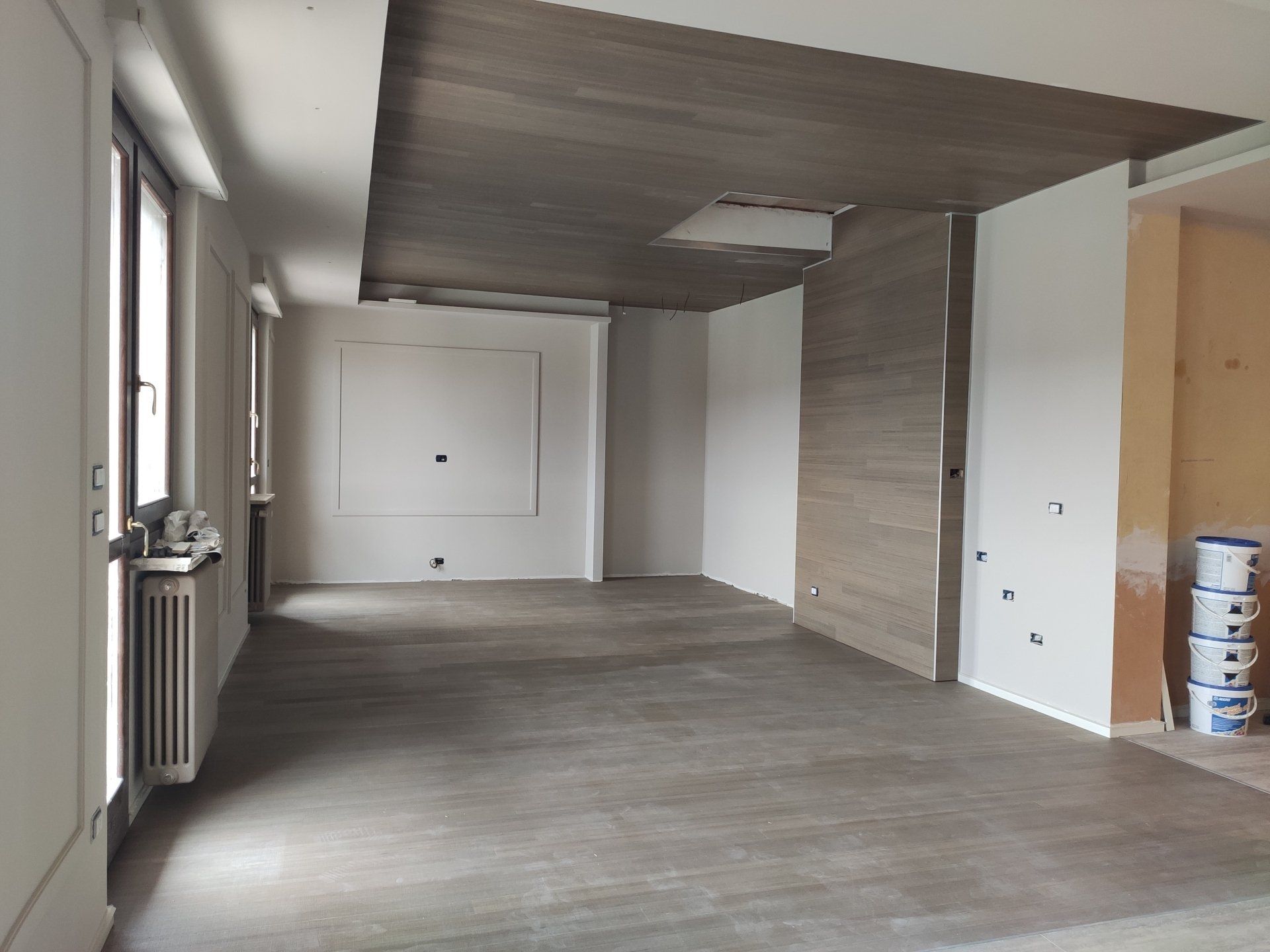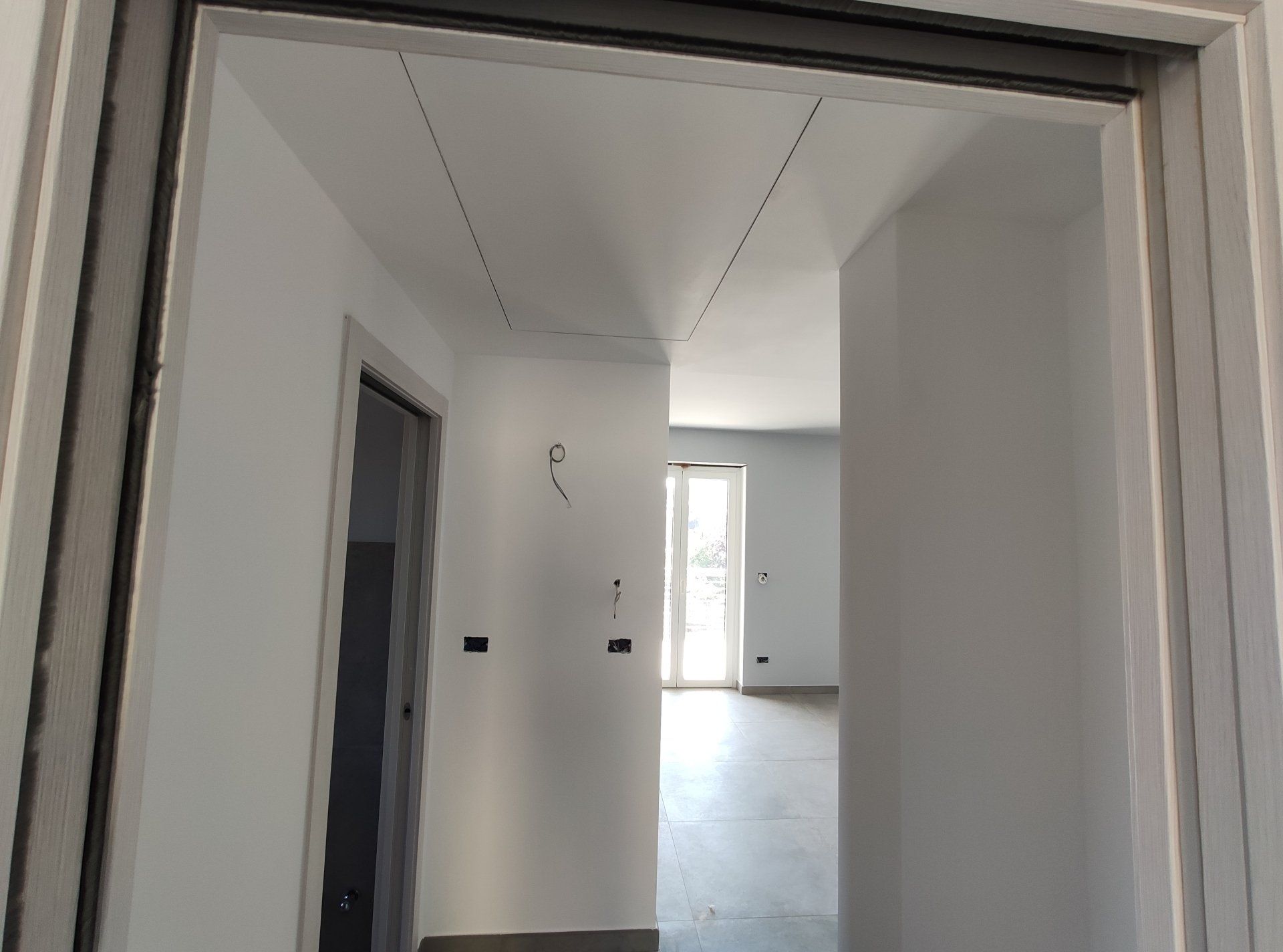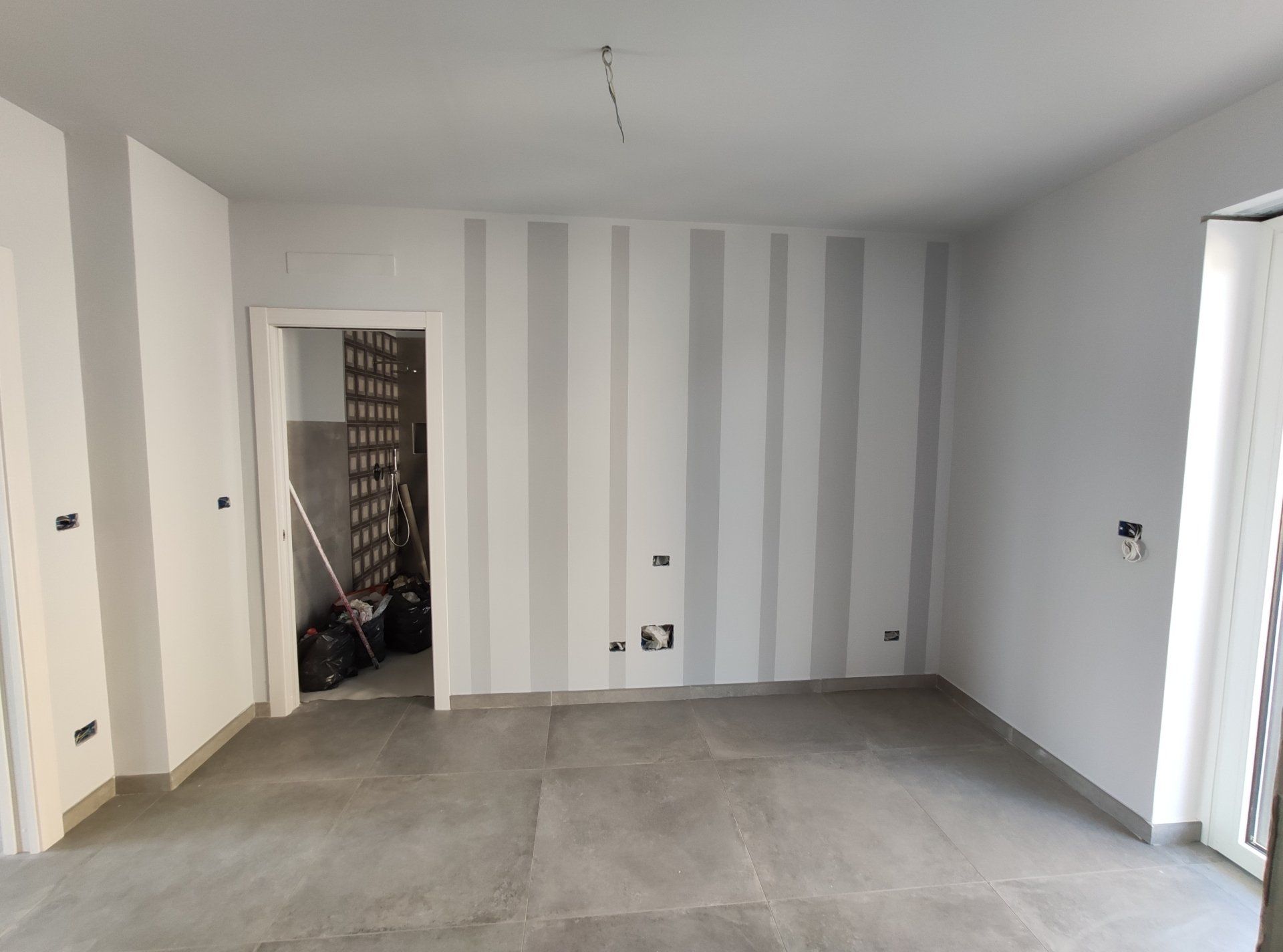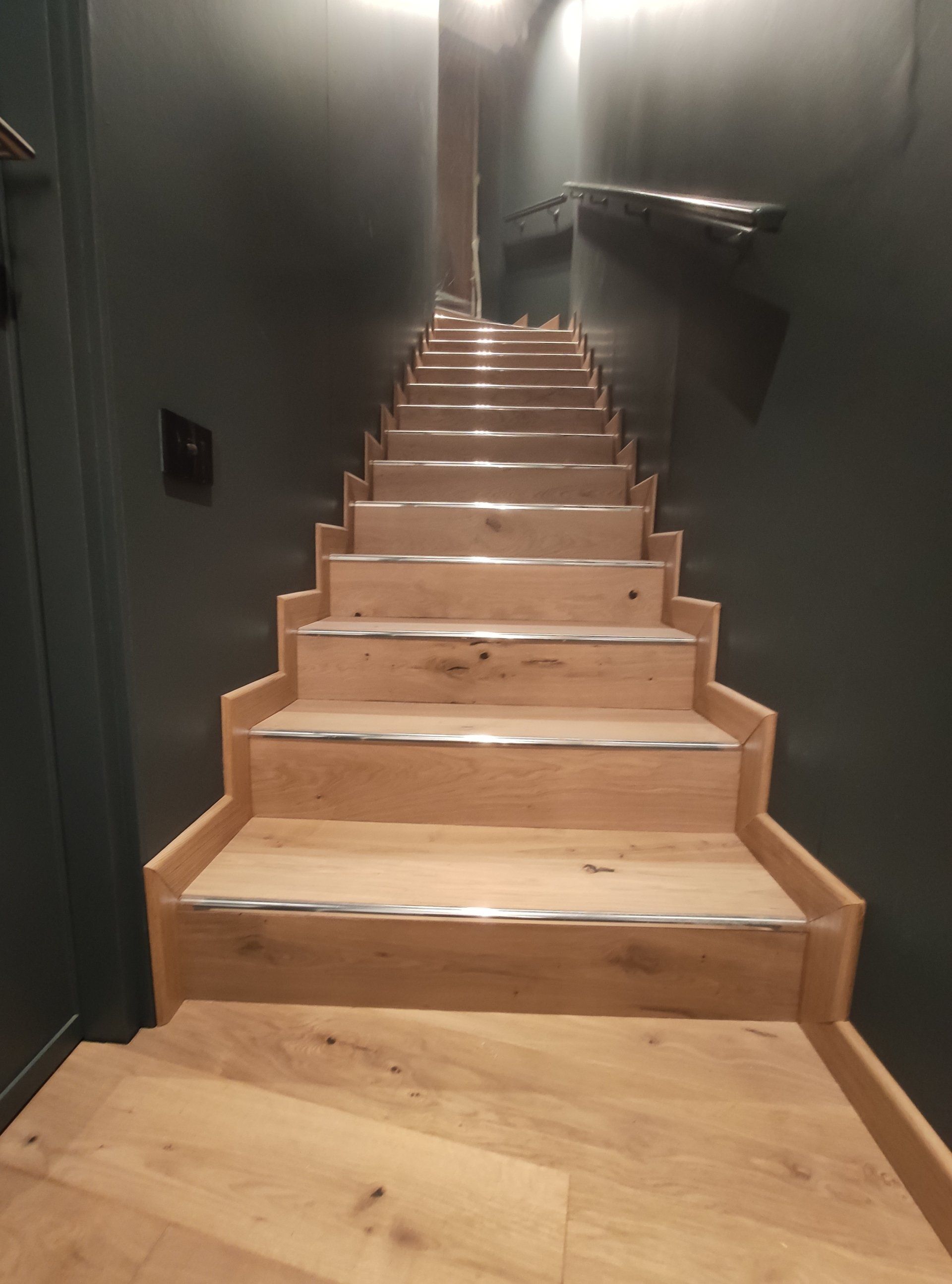 - fornitura battiscopa impiallacciati con posa in opera e stuccatura lungo il perimetro del muro.